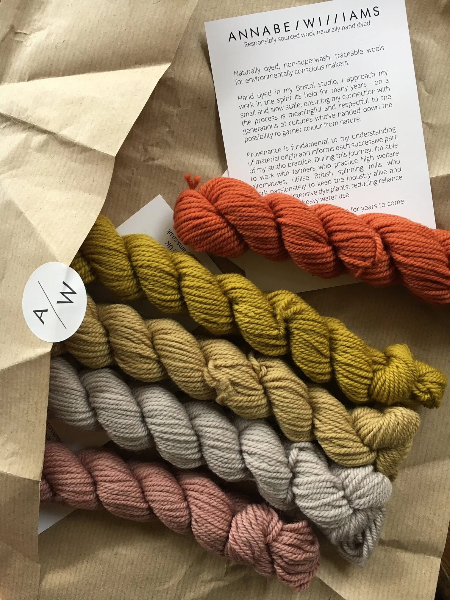 Bristol based yarn supplier Annabel Williams prides herself on producing naturally hand dyed, traceable yarns for environmentally conscious crafters. A trained weaver and expert in natural dying - this field of craft lends itself to a small and slow scale. Driven by the desire only to produce sustainably dyed wool with minimal environmental impact and supporting independent suppliers and British mills we knew this would be a match made in heaven.